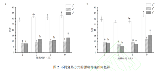 复热方式对预制梅菜扣肉色泽的影响