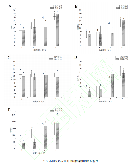复热方式对预制梅菜扣肉质构特性的影响