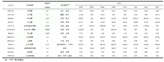 表2 不同复热方式预制梅菜扣肉的关键风味物质OAV值